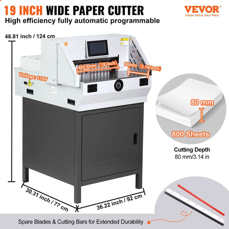 E490T Electric Paper Cutter 19 Inch (490mm) Heavy Duty Guillotine with 7 Inch Touchscreen – A2/A3